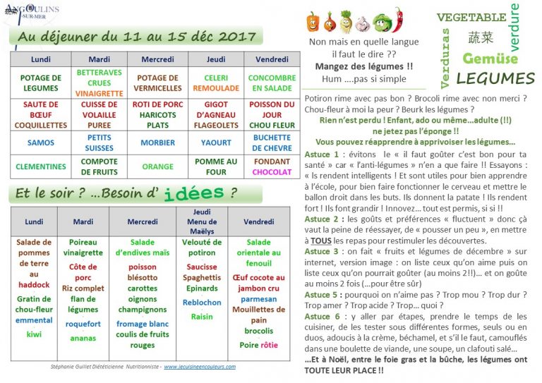 Idées menus – DECEMBRE – Abondance de légumes