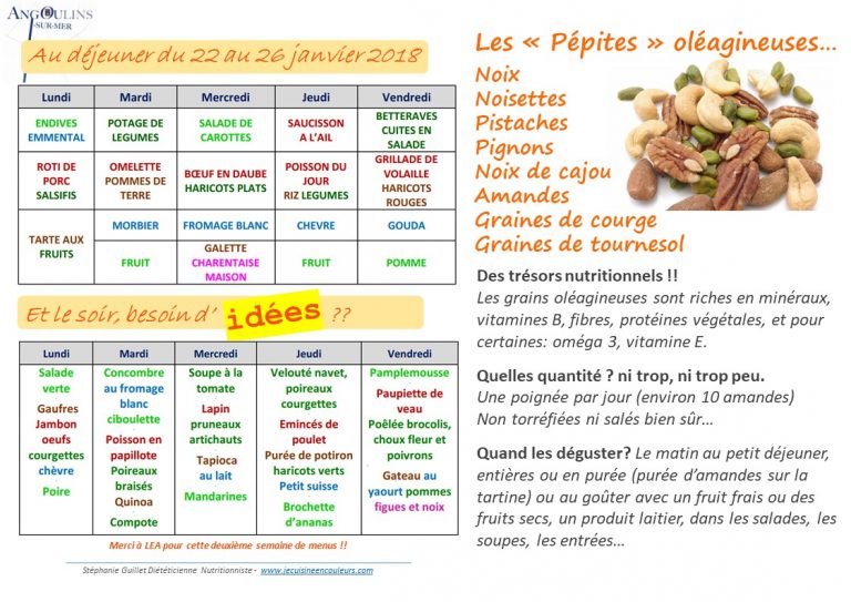 Idées menus – JANVIER – adorables oléagineuses