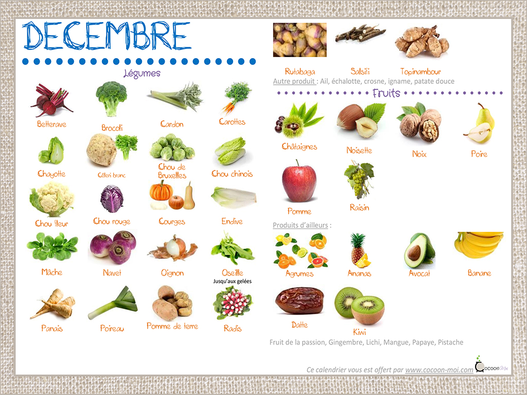 Calendrier fruits et légumes Decembre
